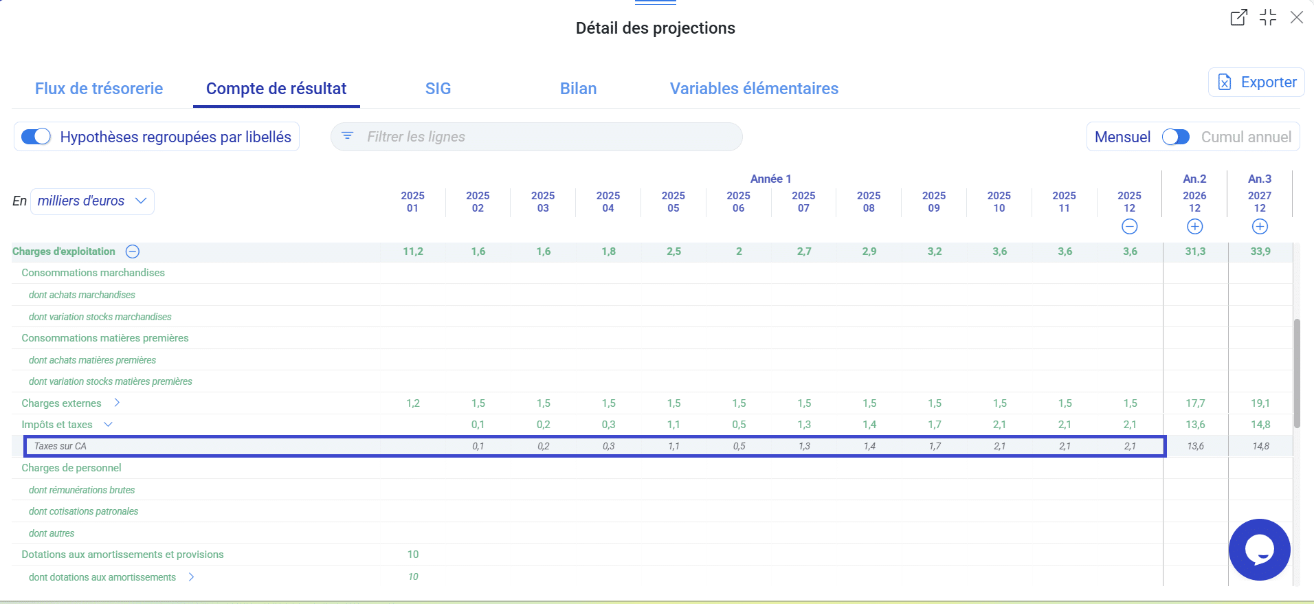 • Les montants de taxes sont inscrits sur la ligne Impôts et taxes du compte de résultat.