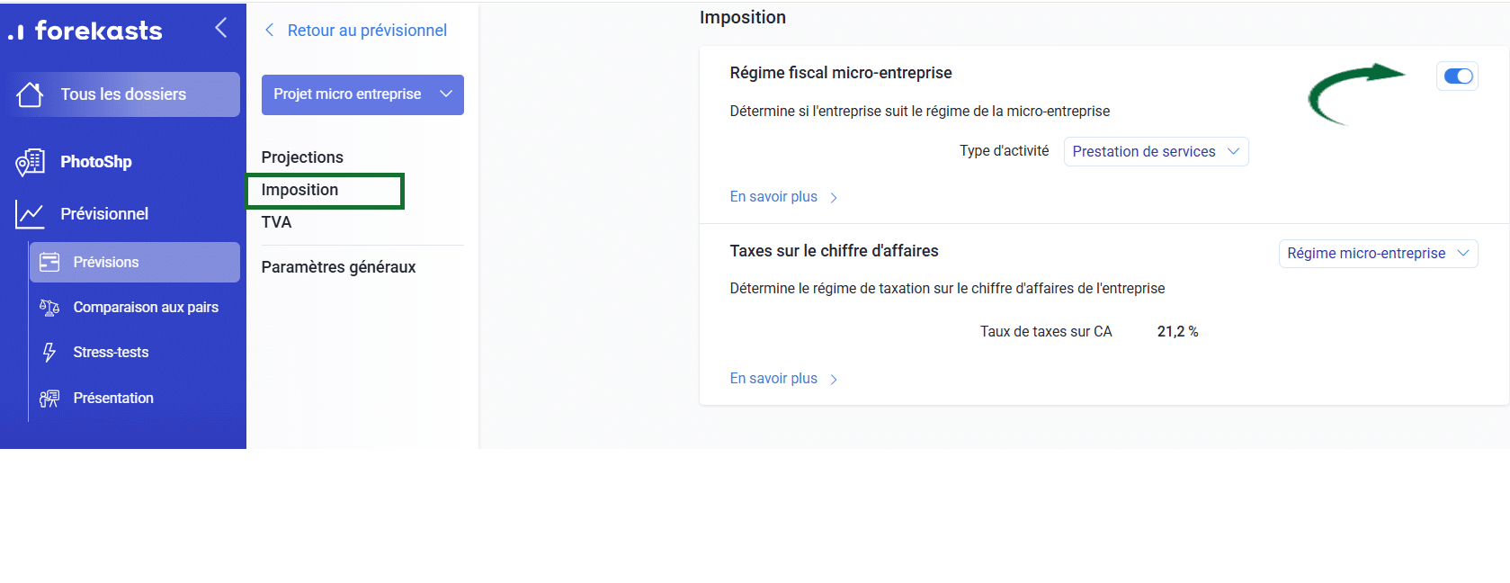 • Activez ensuite le Régime fiscal micro-entreprise.