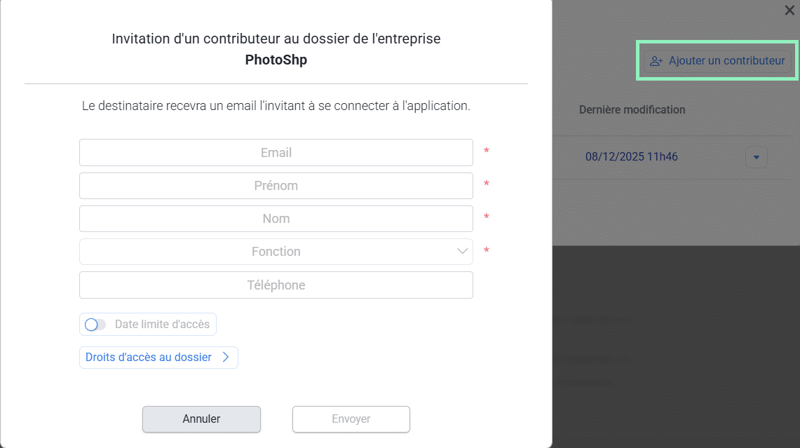 Inviter et gérer les contributeurs d’un dossier
