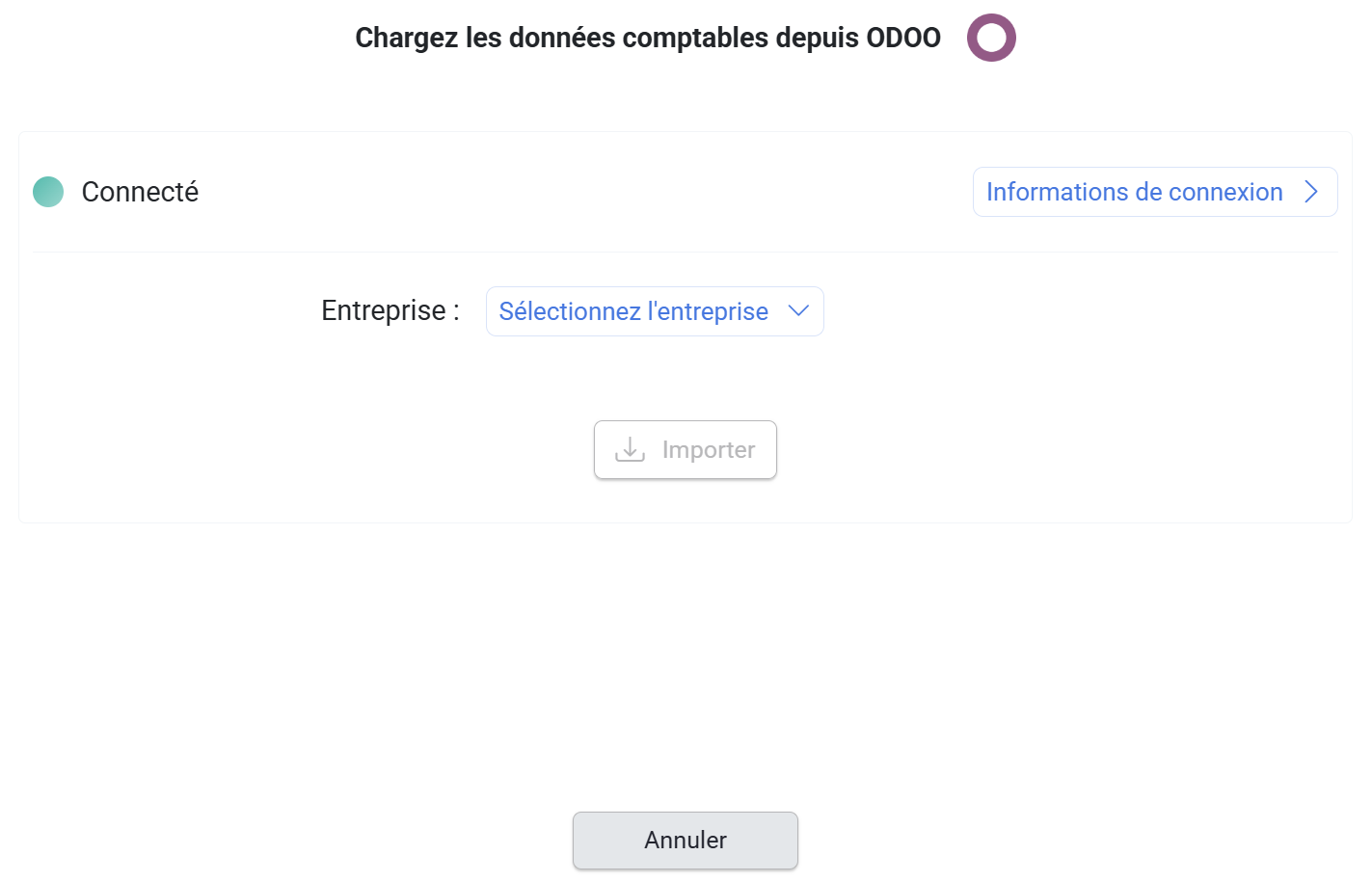 Si votre compte Odoo comporte plusieurs dossiers d’entreprises, vous devez sélectionner celle sur laquelle faire l’import.